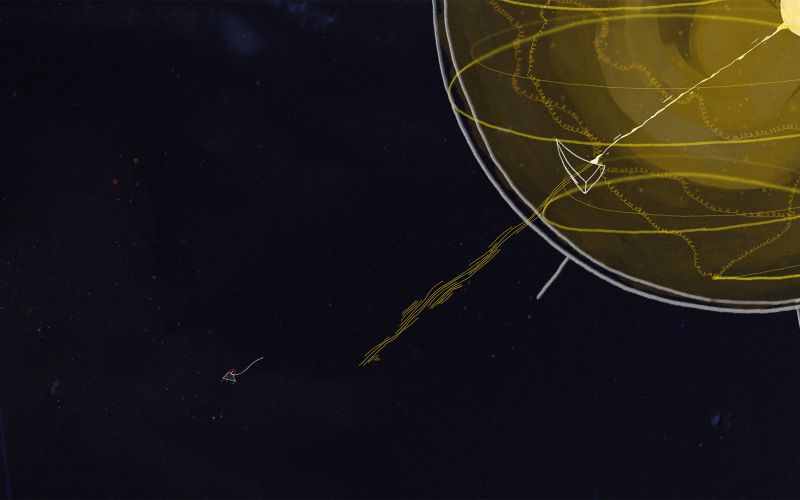 An astronaut in love orbits around the sun absorbing its energy. But the sun is too big, causing their connection to break, and the astronaut must continue on his own.